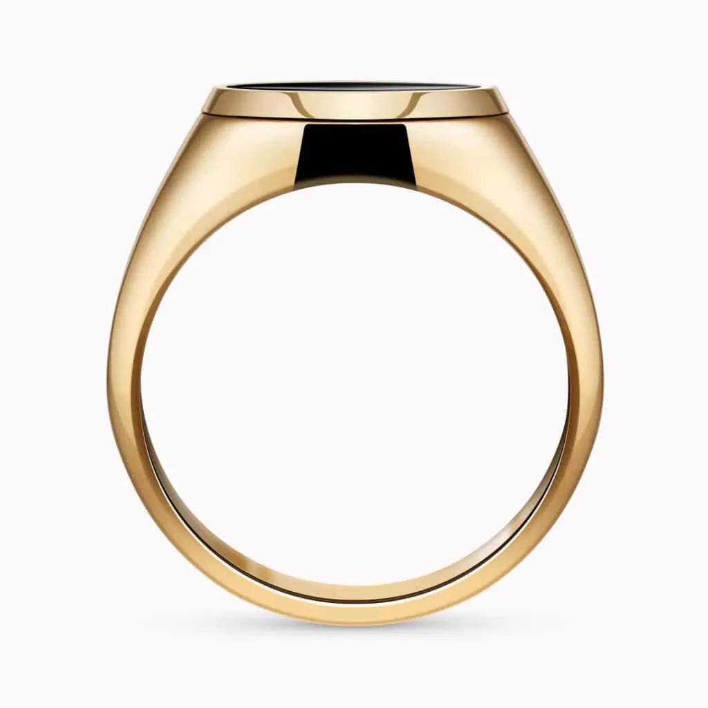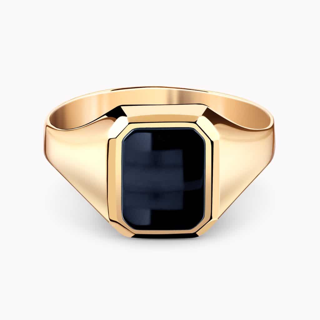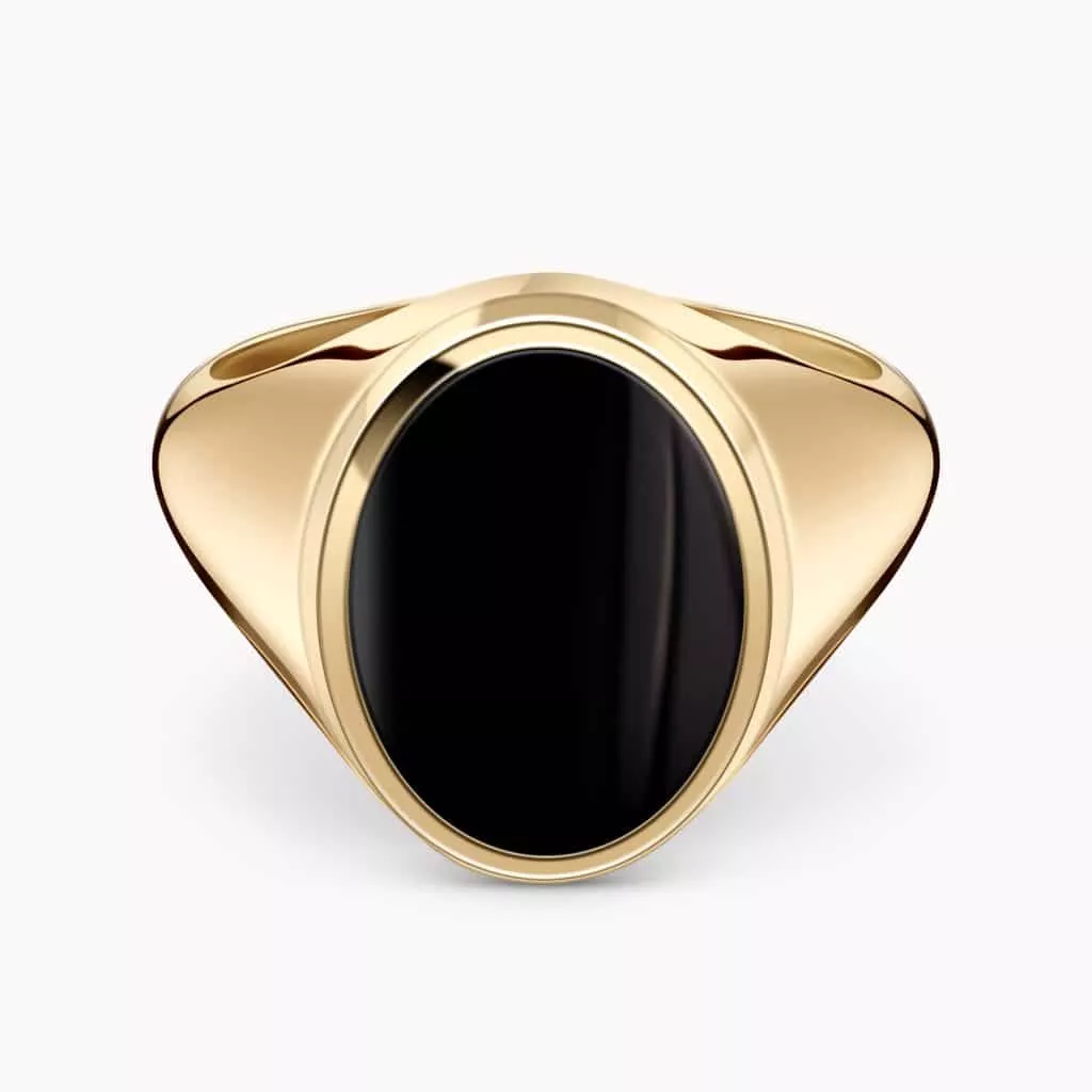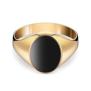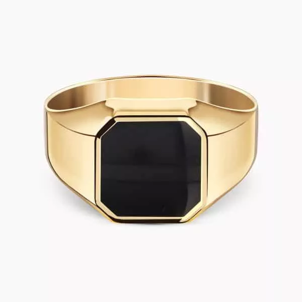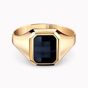 14K Yellow Gold Ring set with an Onyx center Stone.