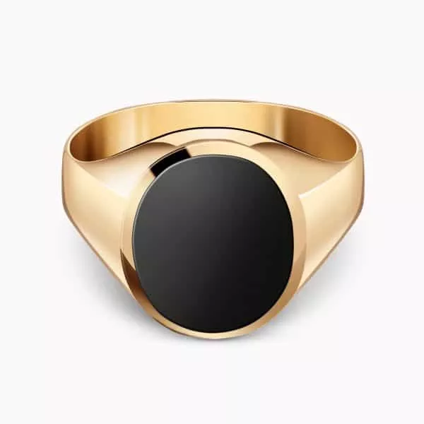 14K Yellow Gold Ring set with an Onyx center Stone.