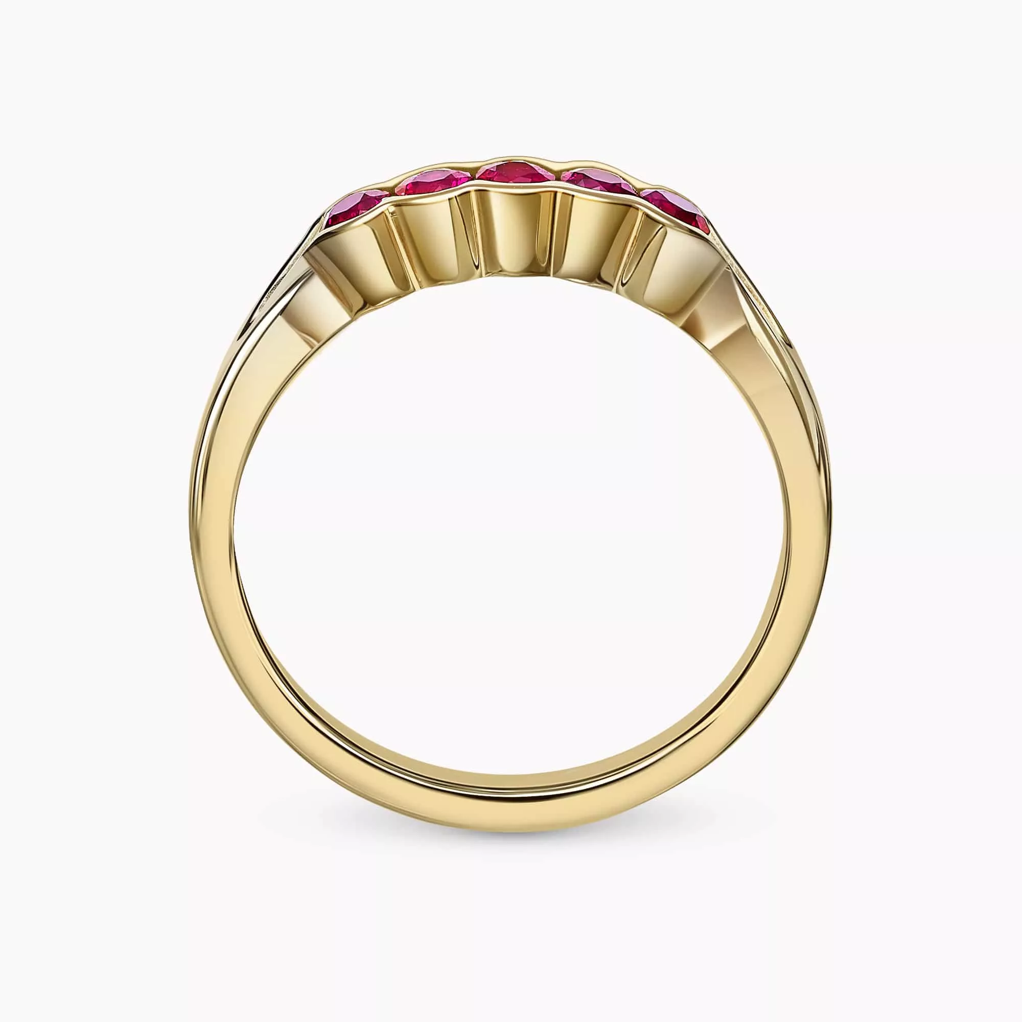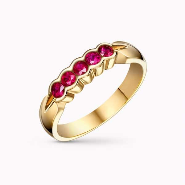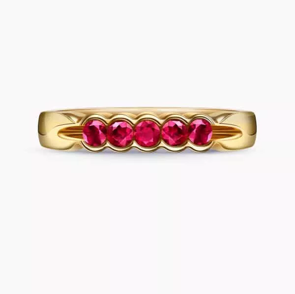 Delicate 14K Yellow Gold Ring with 0.43Ct. Ruby Gemstones.