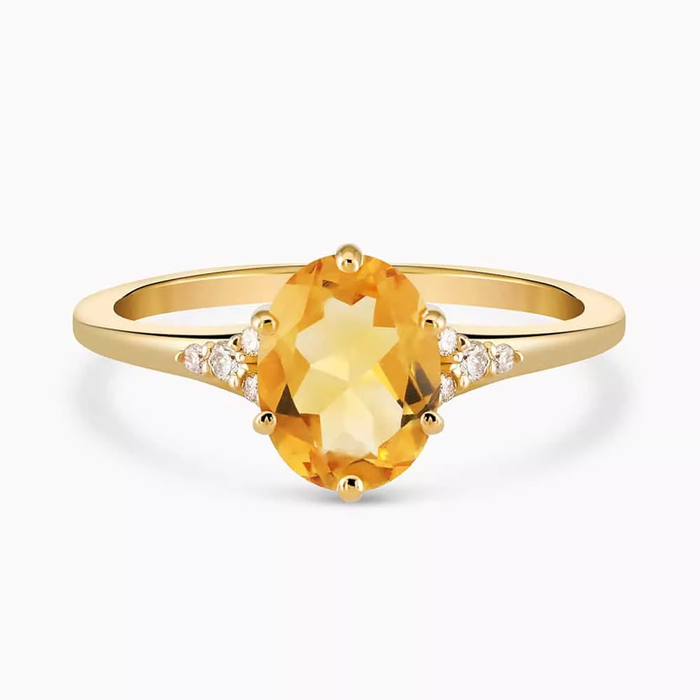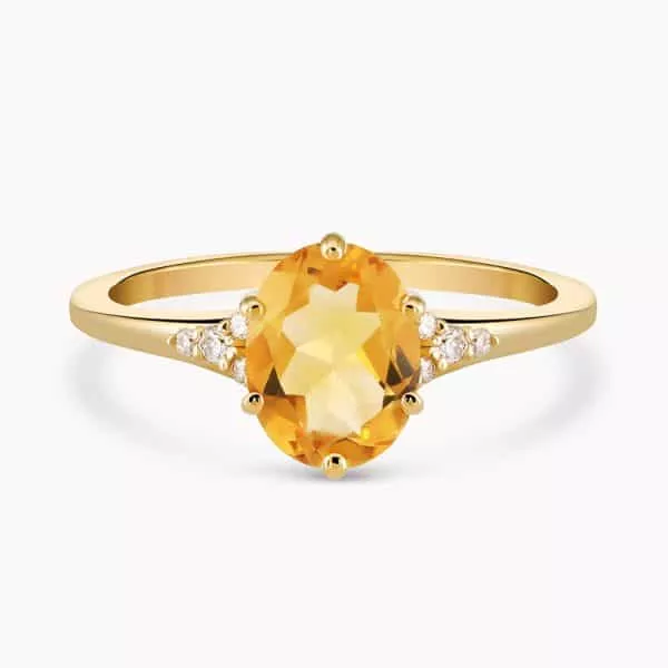 1.00Ct. Citrine Gem Stone with 0.05Ct Diamond set in a 14K Yellow Gold Ring.