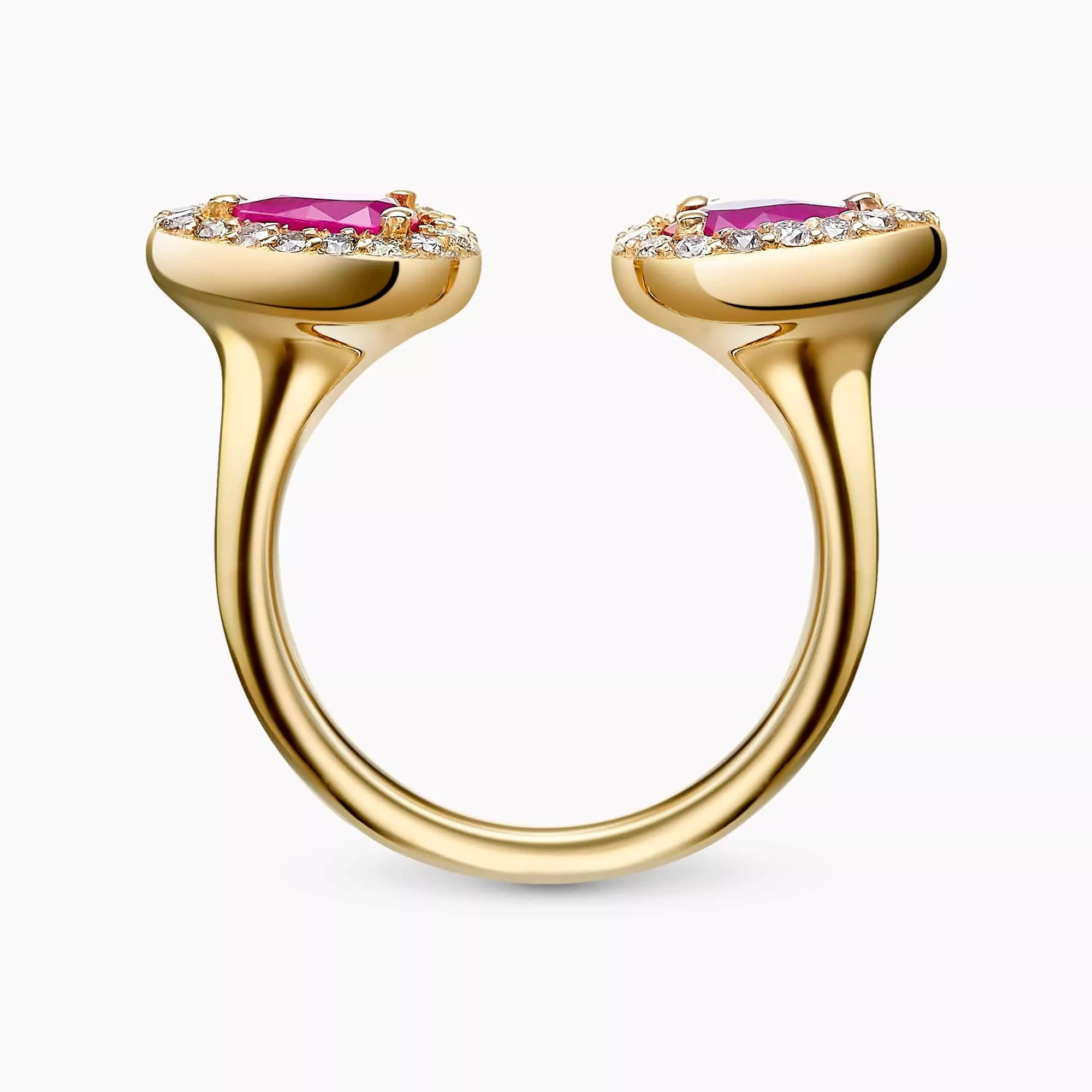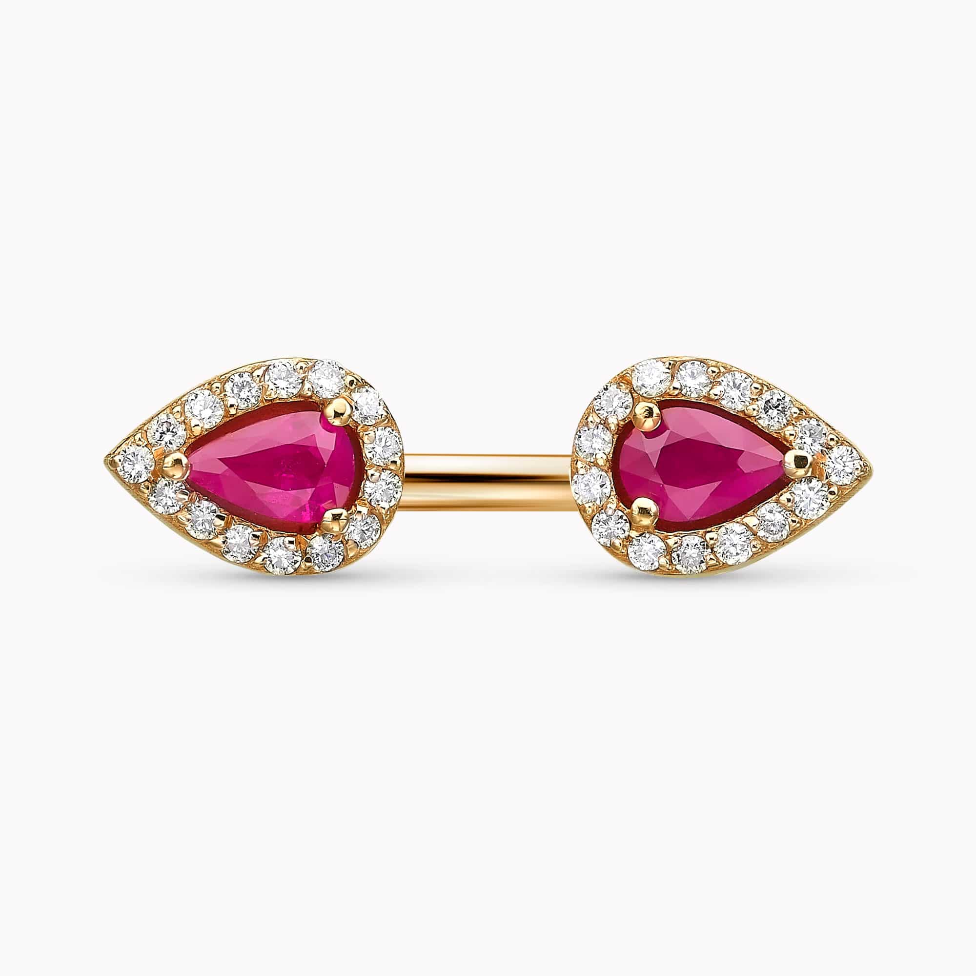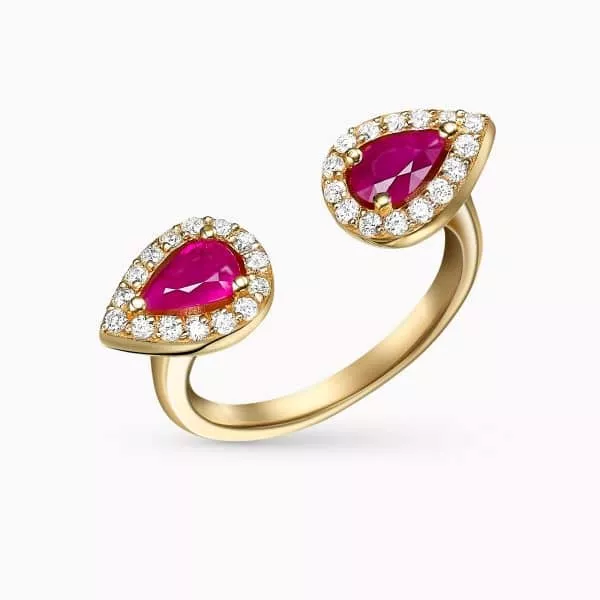1.01Ct. Twin Pear-Shaped with 0.40Ct. diamond Halo mounted in 14K Yellow Gold Ring.