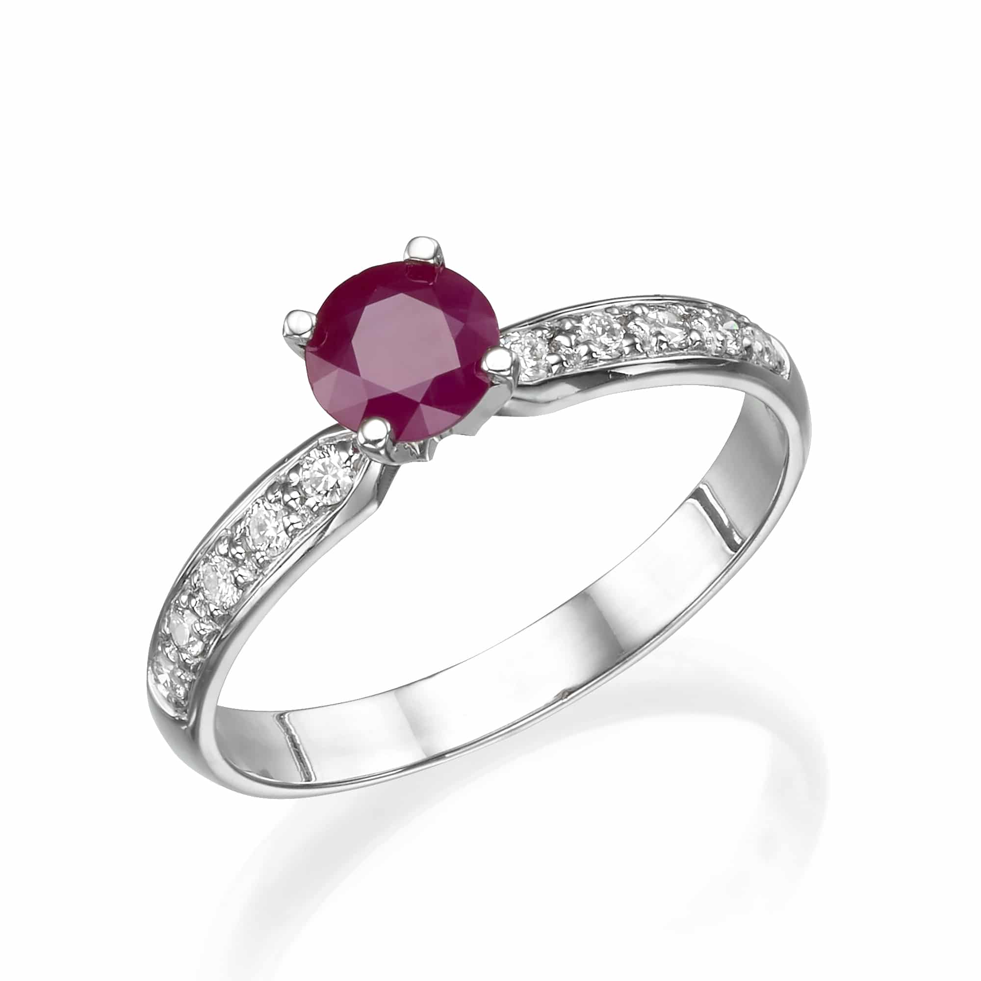 0.70Ct. Round Cut Ruby Gem stone with 10 Round Cut Diamonds total 0.17Ct. mounted in a 14K Gold Ring.