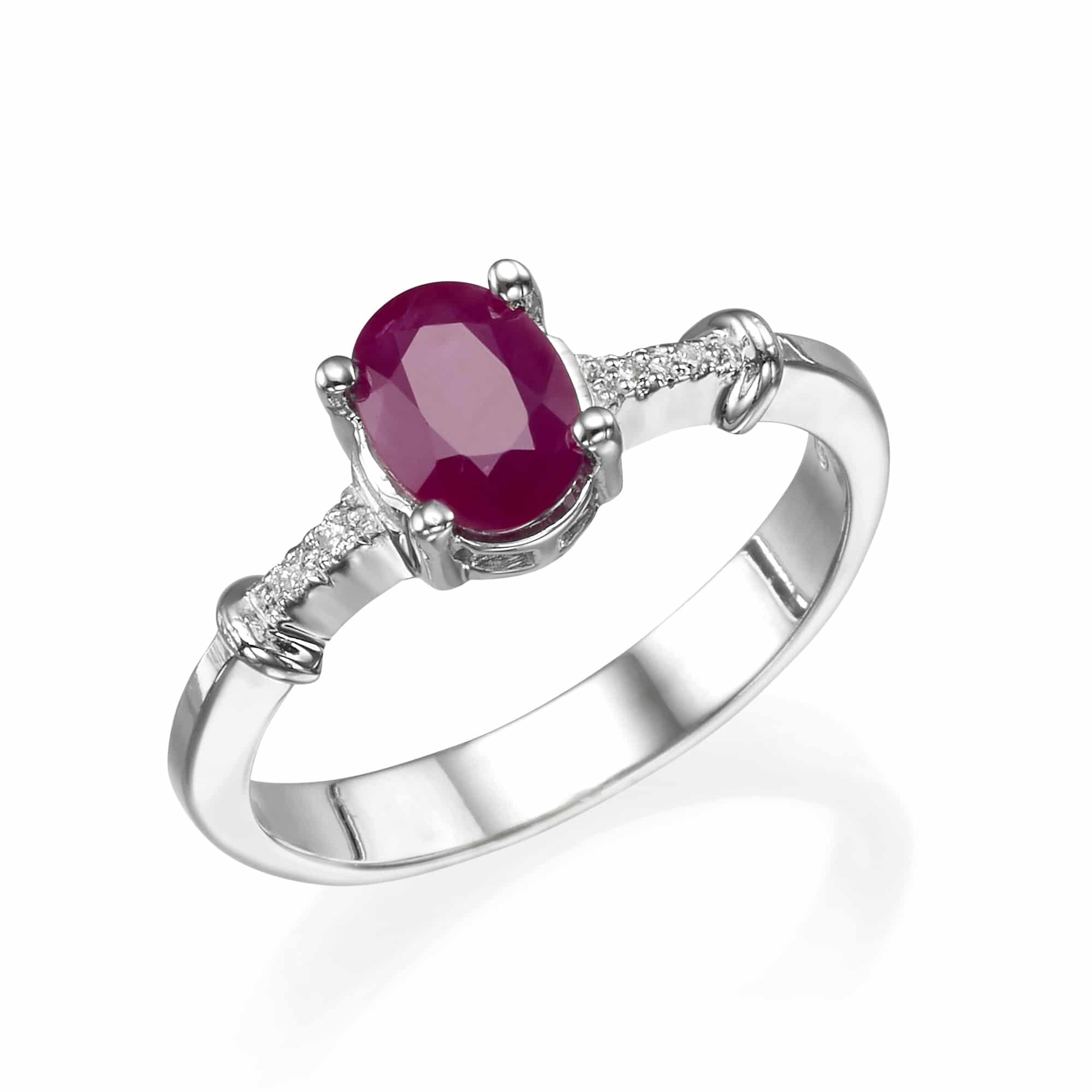 1.04Ct. Round Cut Ruby Gem stone with 12 Round Cut Diamonds 0.06Ct. mounted in a 14K Gold Ring.