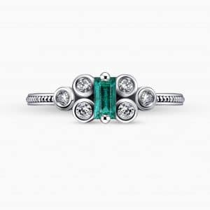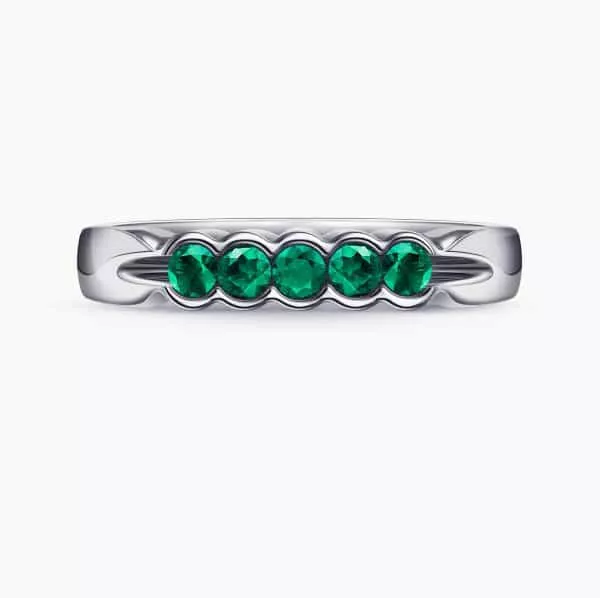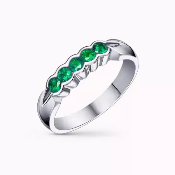 Delicate 14K White Gold Ring with 0.40Ct. Emerald Gemstones.