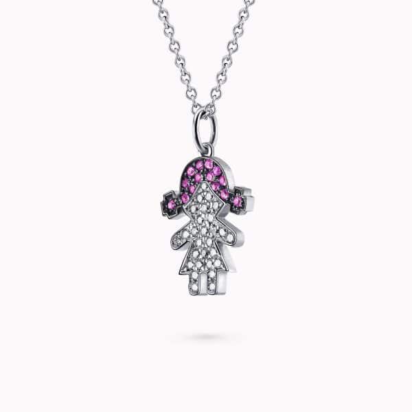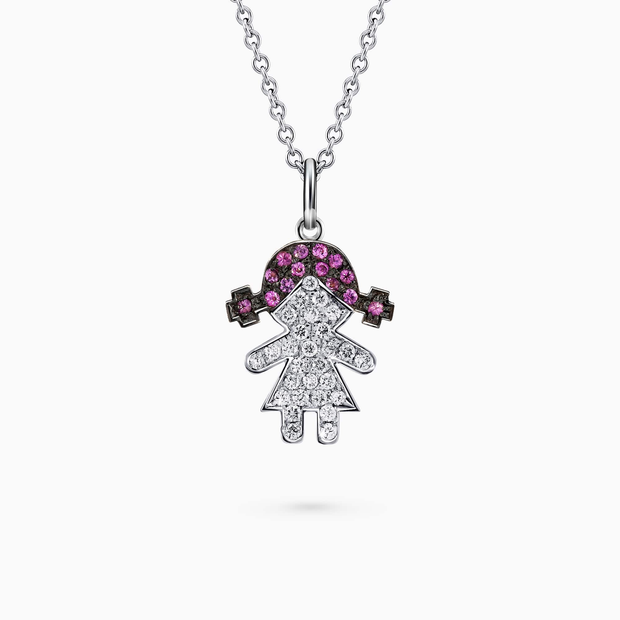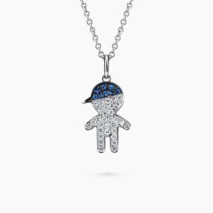 Girl Figure Pendant set with 0.12Ct. Diamond and 0.10Ct. Sapphire mounted in 14K White Gold.